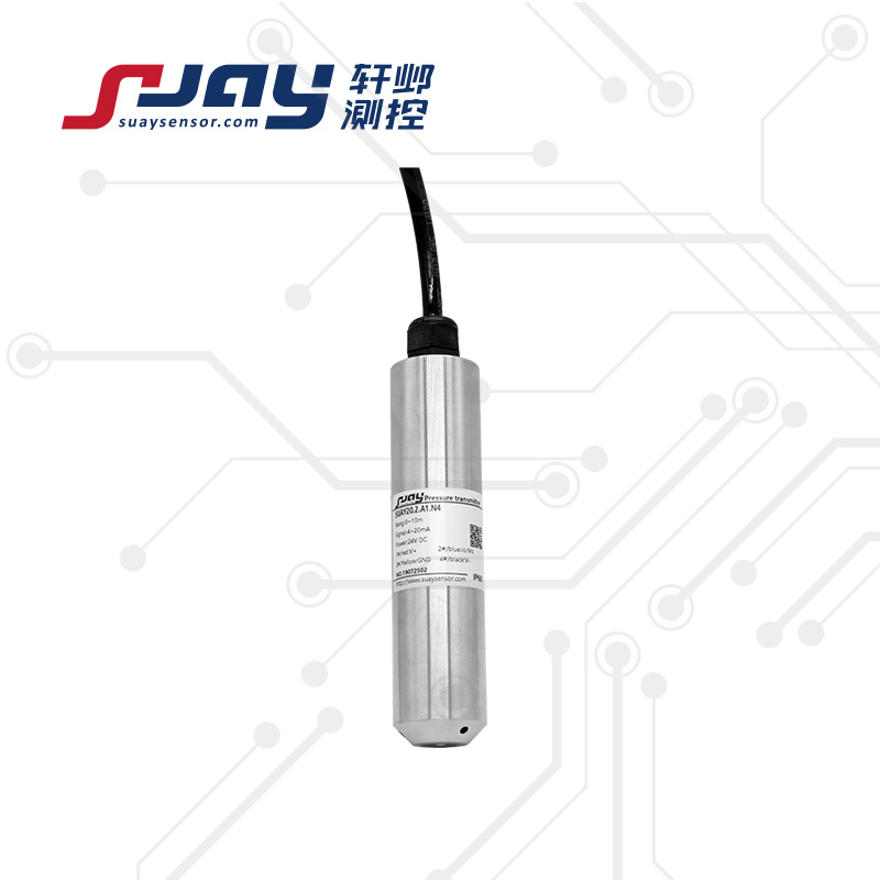SUAY20液位傳感器 液位變送器 數(shù)字液位傳感器 水位傳感器采用MEMS技術(shù)為核心的高靈敏度硅壓阻感壓芯片,是基于流體靜力學原理,通過對液體壓強的測量轉(zhuǎn)換為液位高度。該液位傳感器結(jié)構(gòu)可靠,帶通氣導管的液位測量專用電纜及專業(yè)的水密封技術(shù),既保證了產(chǎn)品的密封性,又使得參考壓力腔與大氣相通,從而使該系列產(chǎn)品的使用不受不同地域環(huán)境的限制,既保證了產(chǎn)品的長期穩(wěn)定性,又極大提高了該款液位傳感器的綜合使用精度。全密封潛入式測量,一體化結(jié)構(gòu)和標準化的輸出信號,為現(xiàn)場使用和自動化控制提供了方便。再通過合理的選擇、設計接液材料、電纜、護管等,可對不同介質(zhì)的液位進行投入式或插入式測量,適用于城市供排水、污水處理、水池、水文檢測、水庫、河道、海洋等水下液位的長期測量。