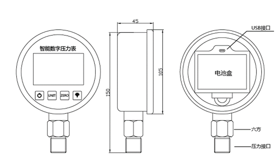 SUAY80數(shù)字壓力表是一款高精度智能型數(shù)字壓力表,內(nèi)置高精度壓力傳感器,能夠?qū)崟r顯示壓力,并且具有精度高、長期穩(wěn)定性好的特點。配備4位顯示的大尺寸LCD液晶顯示,具有清零、背光、開關(guān)機(jī)、單位切換、低電壓報警、峰值記錄等多種功能,操作簡單,安裝方便。殼體和接頭采用304不銹鋼,抗震性好,能夠測量氣體、液體、油等對不銹鋼無腐蝕的介質(zhì)。用3節(jié)5號電池供電,也可以采用USB供電,續(xù)航功耗低、時間長,適用于便攜式壓力測量、設(shè)備配套、校驗設(shè)備等壓力測量領(lǐng)域